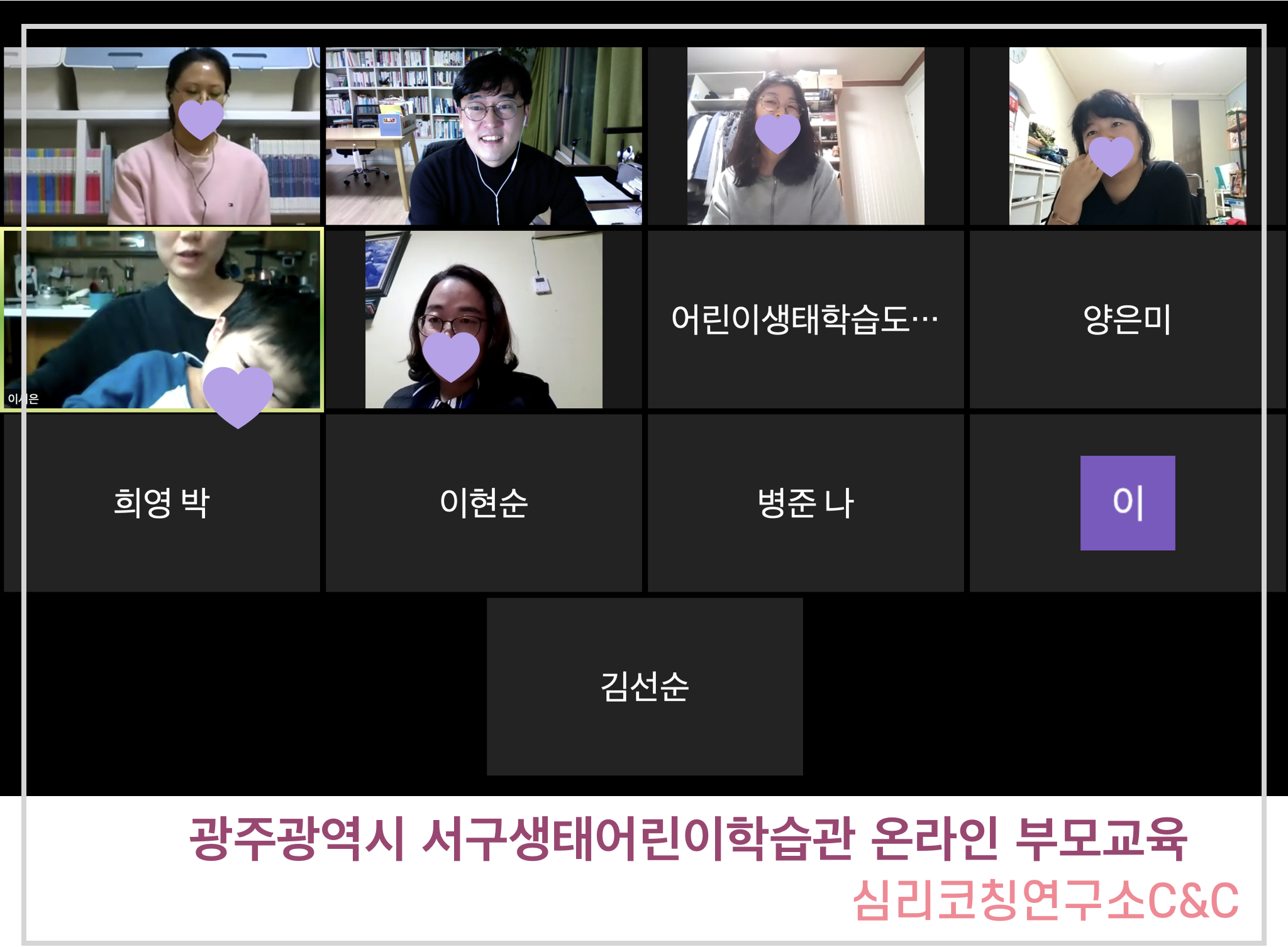 광주광역시 서구생태어린이학습도서관의 초대로 4회기에 걸쳐 온라인 부모교육을 진행했습니다.