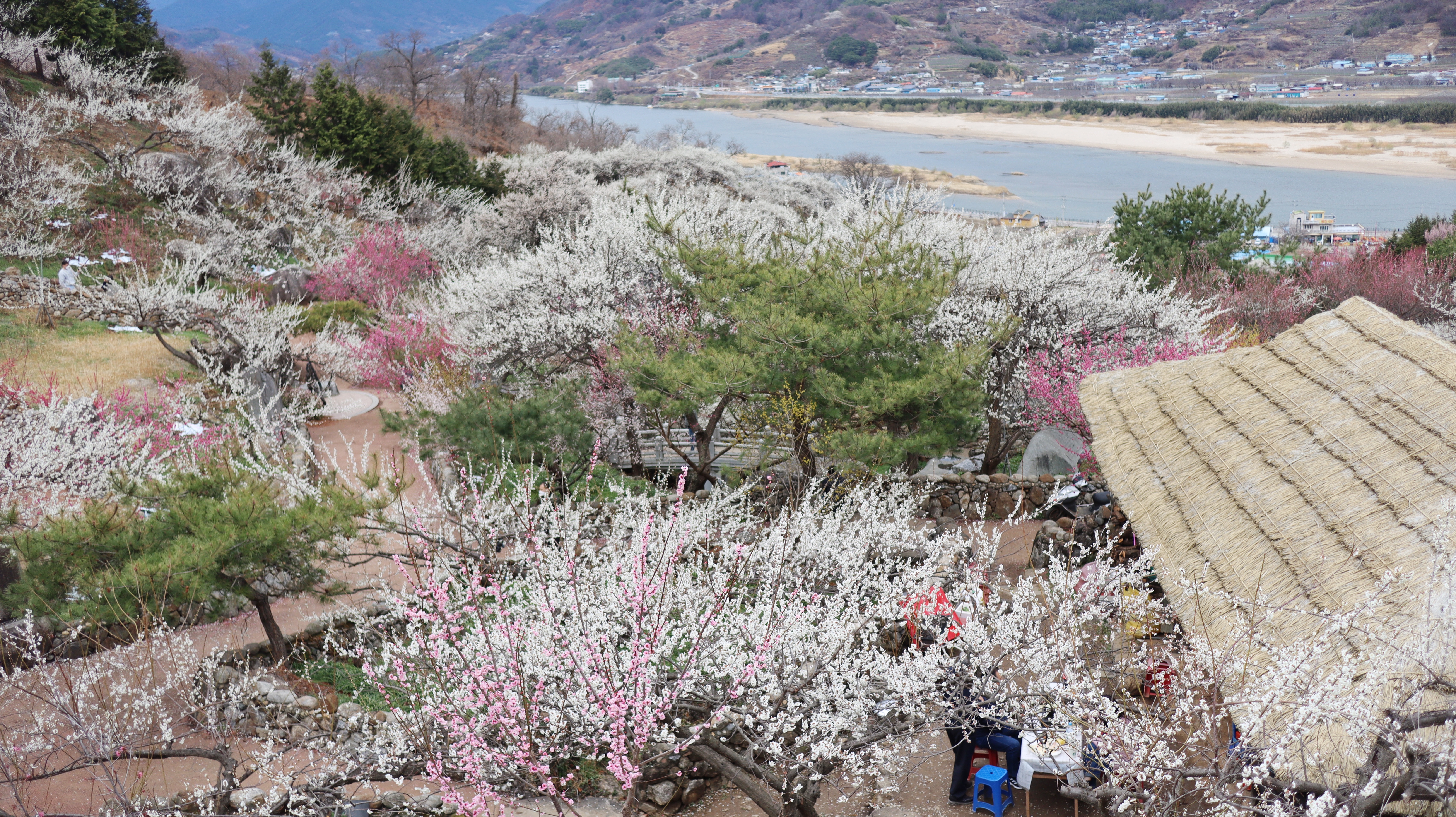 하얗게 피어오른 매화와 중간중간 더욱 매혹스런 자태를 뽐내는 홍매화 앞에 여기가 무릉도원이 아닌가 싶은 생각이 들 정도였으니..